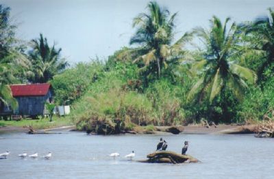 know that a banana tree has only one time fruits and that's it.At around noon we had arrived at the river, there we had to get on a boat for an 2 hour ride, during which we could observe the wildlife near the river. At about 2pm we arrived our final destination the Jungle Lodge, there we first went for Lunch after we had checked in to our rooms. In the afternoon we than took a boat ride across the river to get to the little village of Tortuguero. First we stopped by the Caribbean Conservation Corporation (CCC) visitor center, to watch there a film which explains the turtle conservation and reseach work which was and is still done here. Later we walked a bit on the "Turtle" beach and than through the small village.