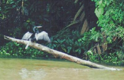 During the beautiful sunset we did get back ( by boat ) to the Jungle Lodge. After the dinner we ( Rachel - one girl from the travel group, Celimon - our guide, another guide, the barkeeper and me ) had lots of fun in the bar of the Lodge. At 11.30pm I said good night and than I sat down near the river for about an hour looked at the stars and just let wander my thoughts. In the meantime I was glad that had I followed the advice of Nicole ( a friend of mine ) and went on this trip to the Tortuguero National Park. Saturday morning we did meet on 5.30am for a boat trip to see some wildlife of the park. This "early bird" trip was optional and did cost extra but if you are there you have to get up early to see a lot.