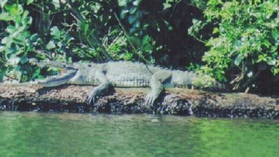 On this evening we also had again a fun night at the bar. On Sunday we started our journey back to San José. Shortly after we had left the Lodge we did see a big corcodile on the banks of the river on a log. First I almost had the impression that this thing was just "decoration" and placed there for tourists, but seconds later it jumped into the river. At about 4pm I was back at my B & B in San José ( I had left there again my big backpack ). On Monday, my last vacation day, I strolled again throug San José and did some shopping. On Tuesday I got up at 4.30am to get to the airport to finally to return to Burlington, Vermont. My vacation was over! ;-(((